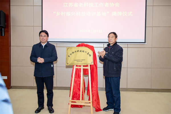 1月9日上午,江苏省老科技工作者协会“亚夫富民大讲堂”和“乡村振兴科技培训基地”揭牌仪式暨江苏省老科技工作者协会江苏农林职业技术学院分会成立仪式在学院综合楼9楼会议室顺利举行。江苏省老科技工作者协会常务副会长王鲁宁、秘书长刘献理,江苏省农业农村厅离退休干部处处长徐晓青、二级调研员张仕勤、省老科协农业农村厅分会常务副会长兼秘书长沈福林,学院党委书记简祖平等领导和专家出席会议。纪委书记孙俭主持会议。
