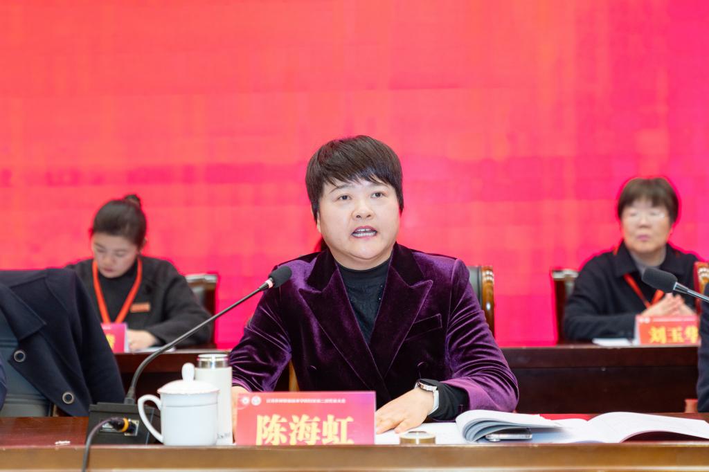 陈海虹副主席代表镇江市妇联衷心感谢学院党委长期以来对妇联工作的关心、支持,对学院第一届妇联执委会工作表示高度认可,并要求妇联在今后工作中:一要提高政治站位,在引领全院妇女“听党话、跟党走”中筑牢巾帼信仰之基;二要服务中心工作,在推动学院高质量发展中展现巾帼担当作为;三要聚焦主责主业,在联系服务女性中建设温暖贴心的“妇女之家”。