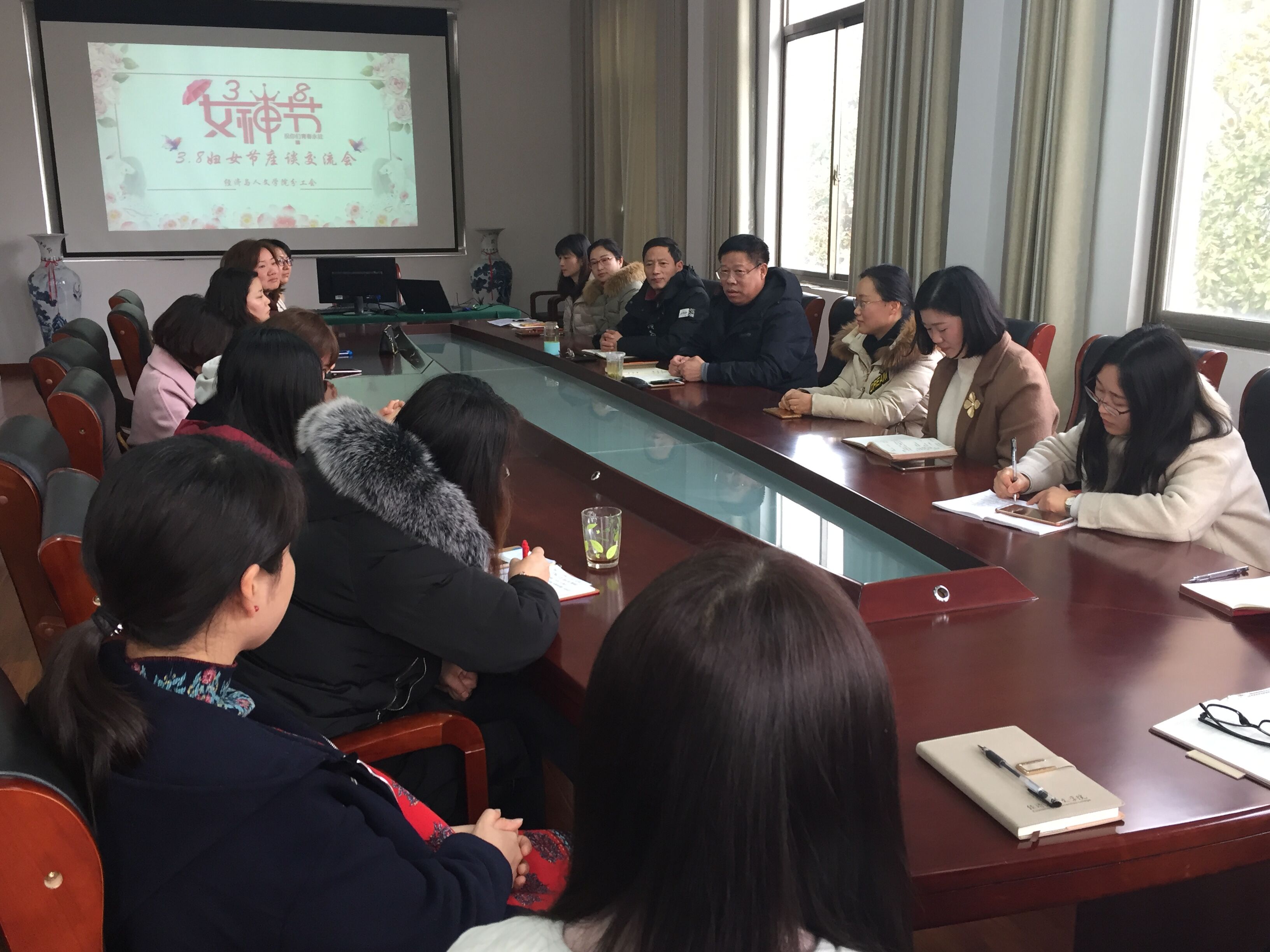 学院邀请校工会江德明主席与学院全体女教师进行了交流座谈。首先,乔小倩副书记致开场词,向各位女同胞致以节日的祝贺和问候,并肯定了我院女教职工为学院作出的成绩和奉献;接着女同胞们积极踊跃地发表了自己对工会工作的想法和建议,比如结合专业特色开展凸显经文特色的活动、走出校园关注农村妇女儿童、设立女同胞休闲室等等;随后夏祖国书记以精辟的“三好”“五有”给大家提出了要求:做个好母亲、好妻子、好教师,有身体、有幸福、有靓丽、有爱心、有成就感;最后江主席对我们工会工作进行了表扬和认可,并向在座的所有女教师表示节日的祝贺。