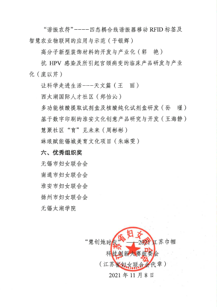 我院学子在2021年江苏巾帼科技创新大赛上喜获佳绩