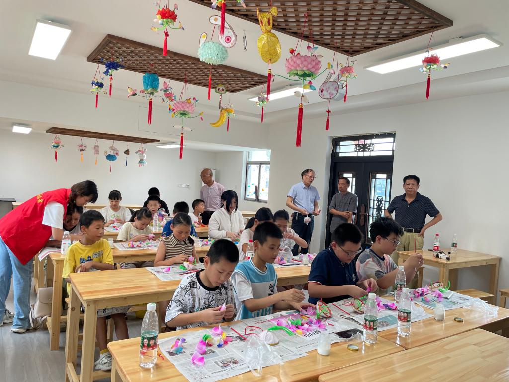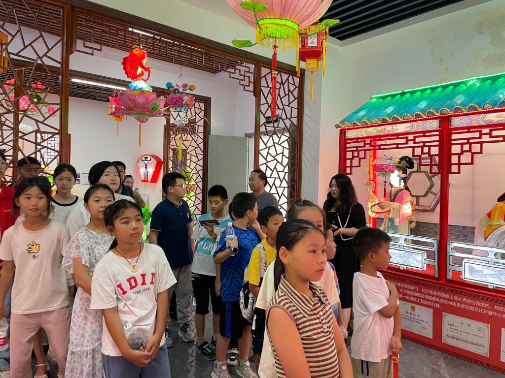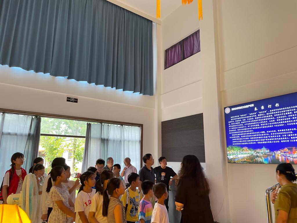 8月14日上午,学院关工委组织句容市茅山镇城盖村“爱心暑托班”16名学员,来到秦淮花灯文化研发中心参观学习。