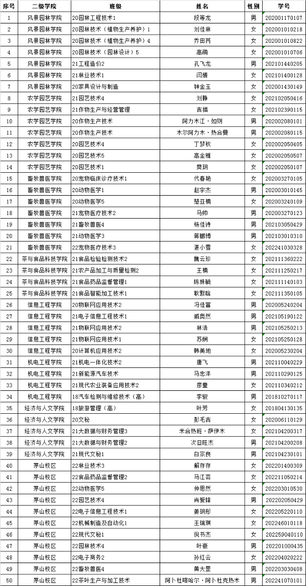学院关工委时刻关注家庭经济困难学生的动态,把开展扶贫助学活动作为服务青少年、为青少年做好事办实事解难事的一项重要工作内容。今年关工委将资助我院50名家庭经济困难大学生。经本人申请、班级评议、二级学院初审,学生工作处审核,拟资助以下同学,现予以公示。