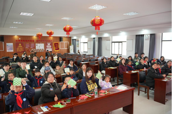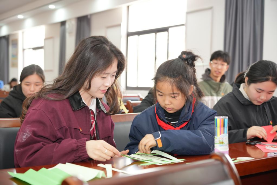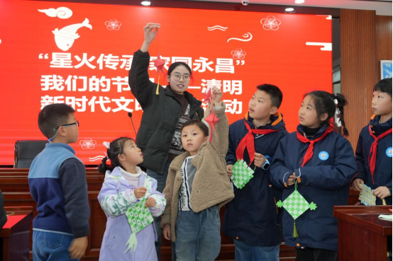 最后,大家来到王庄村党群服务中心,大学生带着小学生通过制作闪闪红星挂件致敬最可爱的人,折白菊向先烈寄托哀思,在纸编清明手工挂件上书写清明诗句感受传统文化,通过指尖到心间,大手拉小手,传承红色文化,赓续红色血脉,争做时代新人。