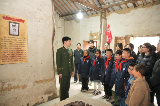 清明时节,为引导青少年不忘来时路,赓续红色血脉。3月30日,在句容团市委的指导下,信息工程学院团委、关工委组织映山红网络思政工作室的大学生和崇明小学的小学生共60余名师生前往后白镇王庄村开展清明节致敬英烈活动。活动开始,全体师生前往后白镇王庄村陈毅抗日作战指挥部,由退役大学生士兵讲述革命先辈们传递秘密情报、组织抗日活动的故事,在故事中跨越时间长河,感悟先烈英勇无畏的精神。